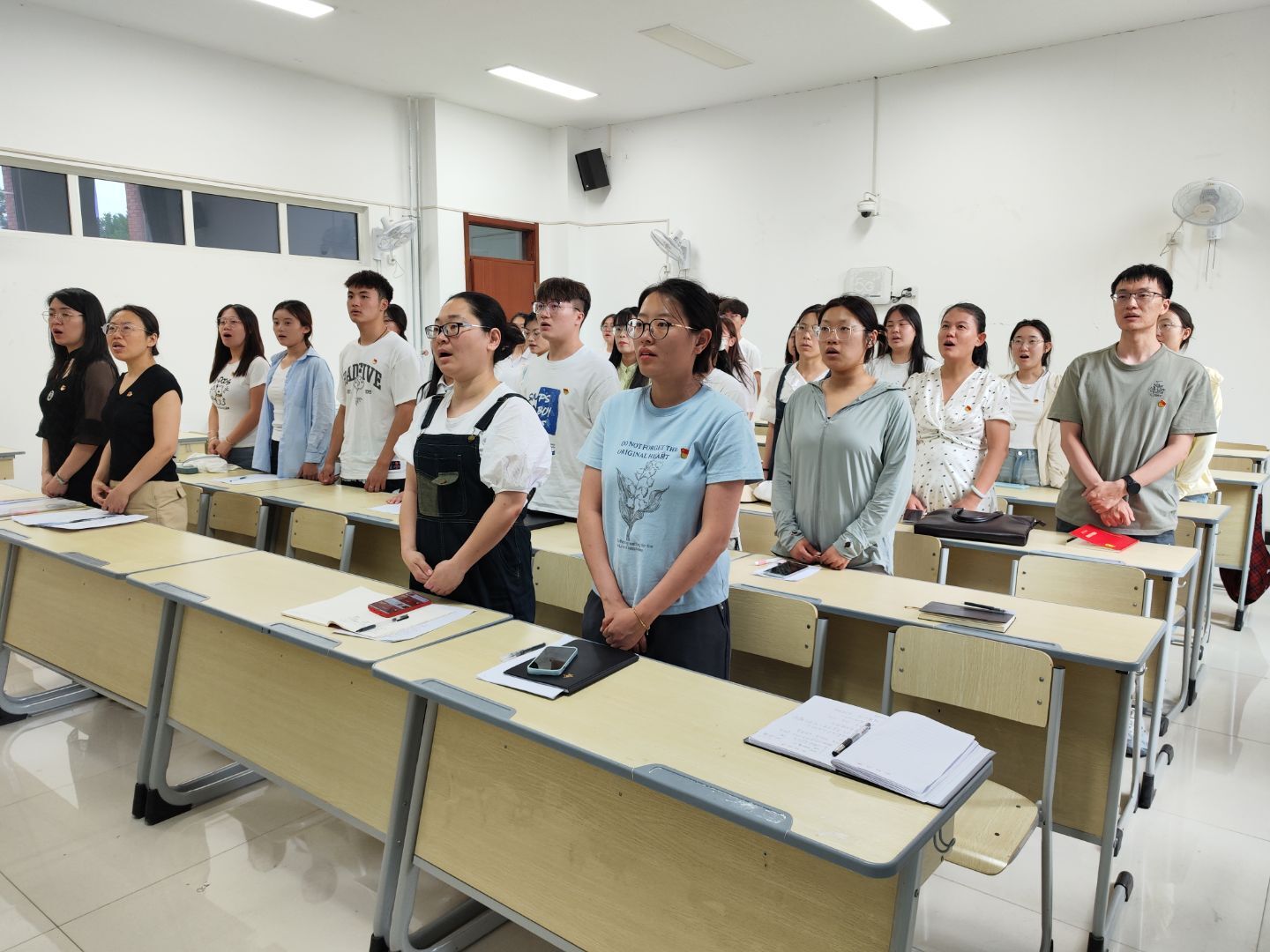 活动在庄严激昂的国歌声中拉开帷幕。全体党员庄严肃立,齐声高唱国歌,在铿锵有力的旋律中,激发起强烈的民族自豪感与使命感,进一步坚定了对党和国家的忠诚与热爱。