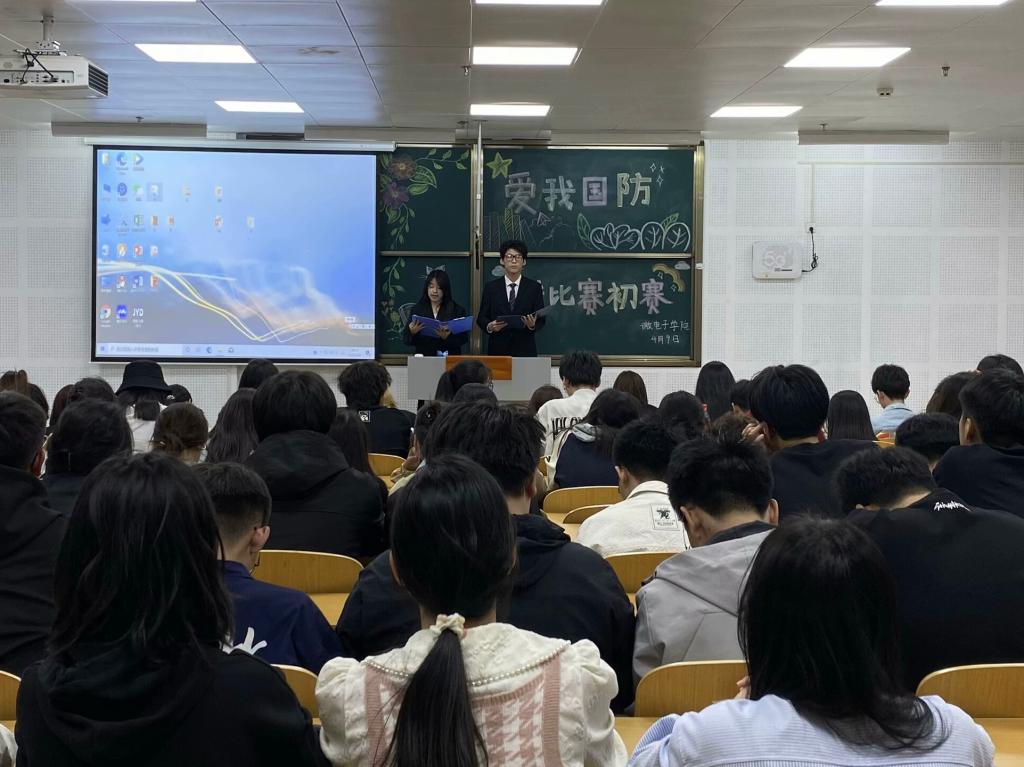 比赛伊始,两位主持人介绍爱我国防演讲比赛规则、评分标准及参赛选手后宣布比赛开始。选手们紧扣主题,从当下国际形势、自身经历等角度阐述对国防事业的理解,有的分析国防建设重要性并提出强化国防意识举措,有的讲述感人国防故事。学生们不仅注重内容深度,还借助 PPT、情景模拟等多样形式展现构思与组织能力,融入爱国主义精神。评委依据主题内容,语言表达,演讲表现等维度公正评分,最终评选出一批优秀选手晋级决赛 。